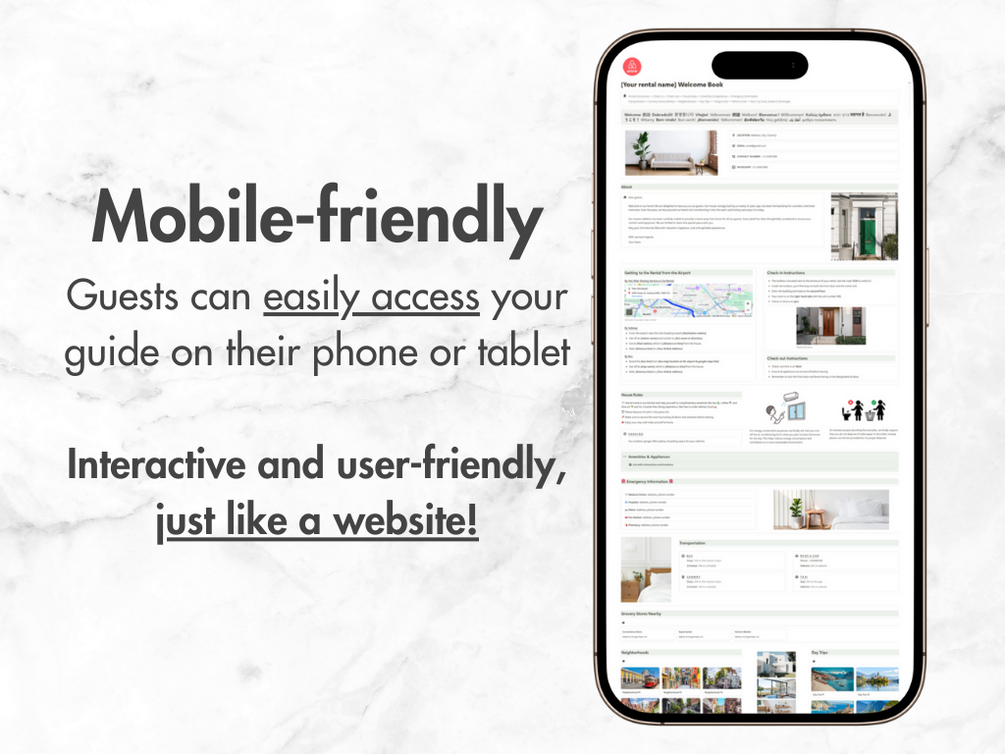 - Mobile and tablet-friendly: Guests can access the guidebook on the go, anytime they need it.
